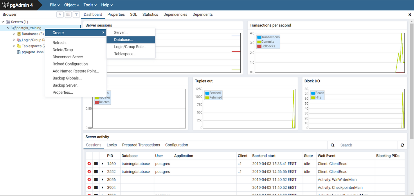 Let’s create a backup of the trainingdatabase with pgAdmin. Right click the trainingdatabase and click Backup…